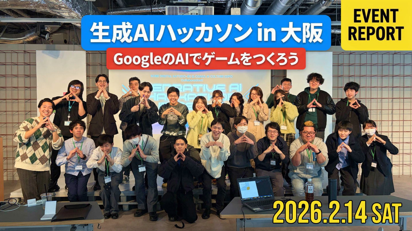 AIリスキル株式会社(本社:大阪市北区、代表取締役:山原慎也)は、2026年2月14日(金)に大阪・グラングリーン大阪にて「生成AIハッカソン in 大阪」を開催しました。Googleの生成AI開発ツール「Google AI Studio(Gemini)」を使い、プログラミング未経験者を含む参加者が生成AIを活用してオリジナルゲームを制作しました。本イベントは、生成AIを使った実践型ワークショップとして開催されました。中学生から50代の社会人まで23名が参加し、わずか90分で21作品のゲームが完成。イベント満足度は94%(4.70/5.0点)を記録しました。