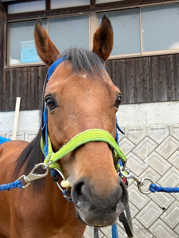 通算成績9戦0勝。3歳の頃、右前足に不治の病「屈健炎」を発症し引退しました。愛嬌があり皆に愛される性格で人間の指示も素直に聞いてくれて、どんな人でもいきなり乗馬できると言われる程の心優しい馬です。競走馬時代は負けてばかりで注目されず悔しい思いをしてきましたが、生まれ持った穏やかな性格は沢山の人を癒し、今は皆から必要とされる「第二の馬生」を歩んでいます。