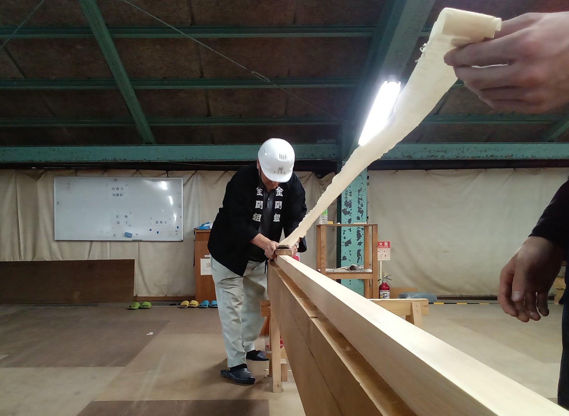 金剛組専属宮大工棟梁による「継ぎ手」の解説およびカンナ削りの実演を実施