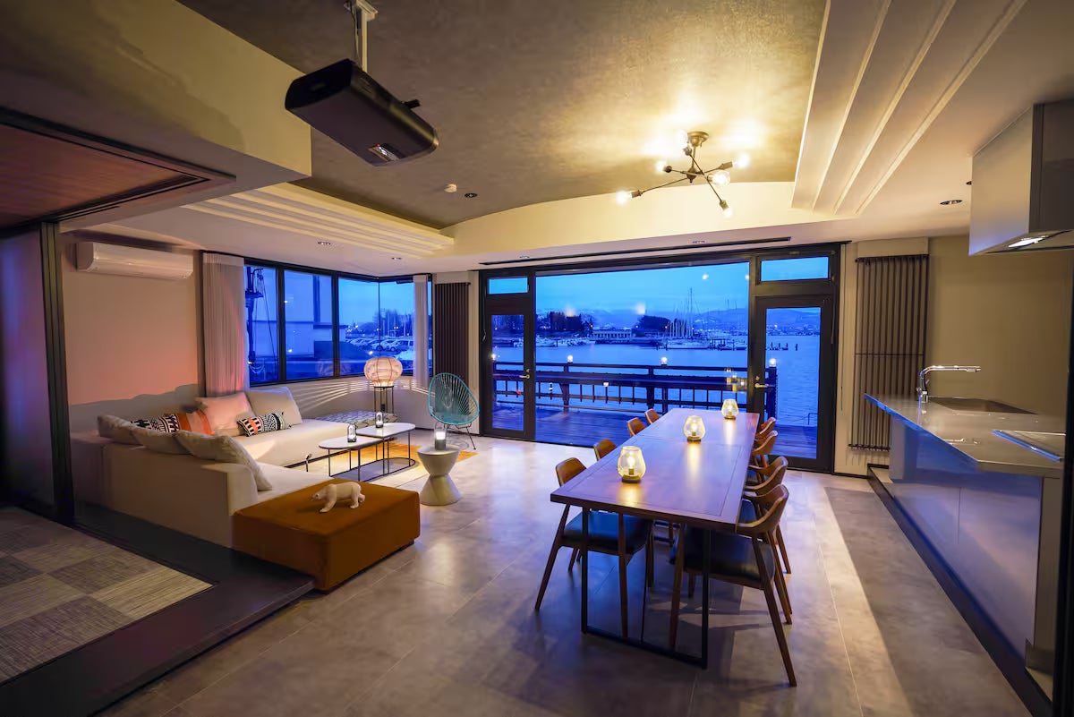 有名観光エリアから徒歩3分の、美しい港と山々を一望できる超好立地のヴィラです。