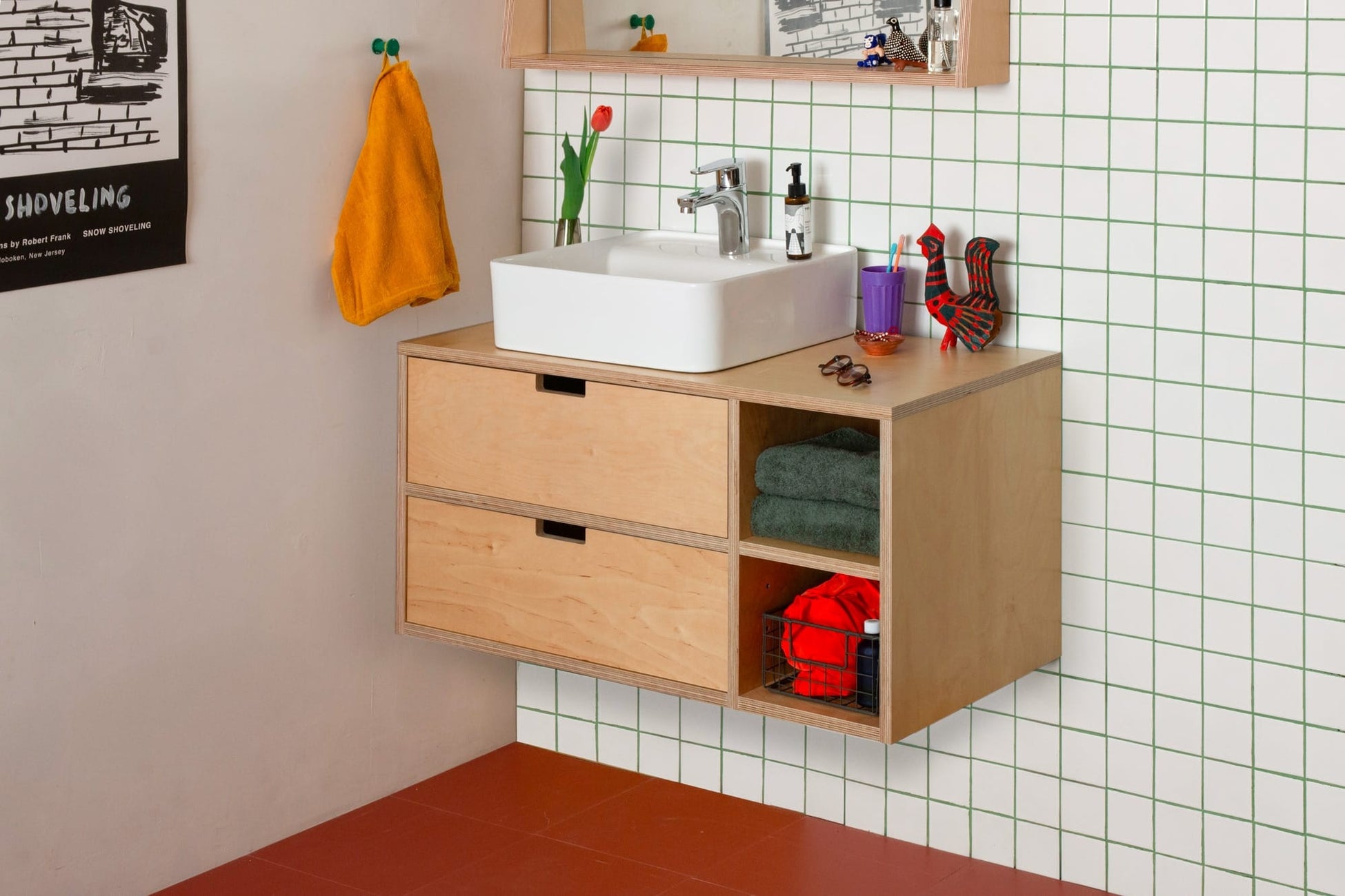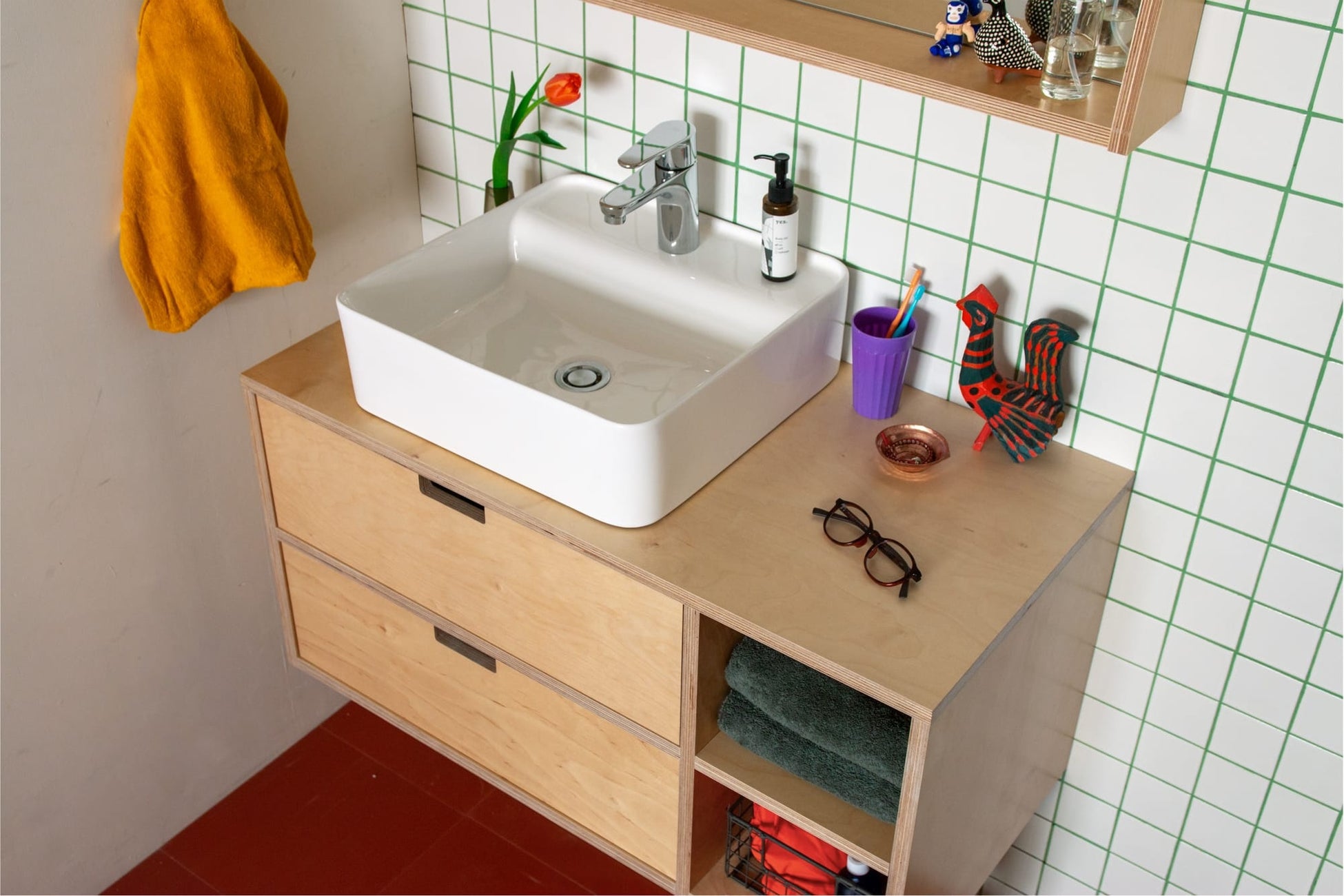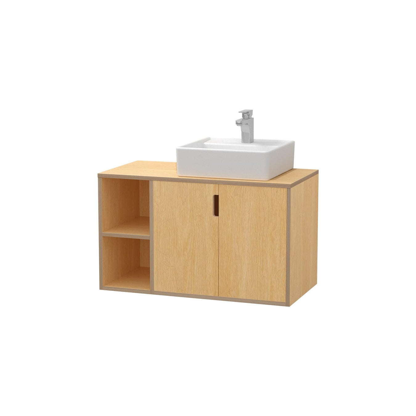 素材:ラトビアバーチ合板(洗面台)、陶器(洗面器)