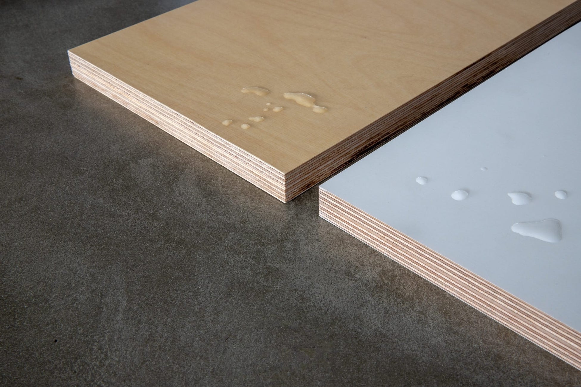 プライウッドの表面には「DAP加工」という仕上げが施されています。表面にDAP樹脂を流し込み、熱で硬化させることにより、耐水性、耐汚性、耐熱性が生まれる仕上げ技術です。