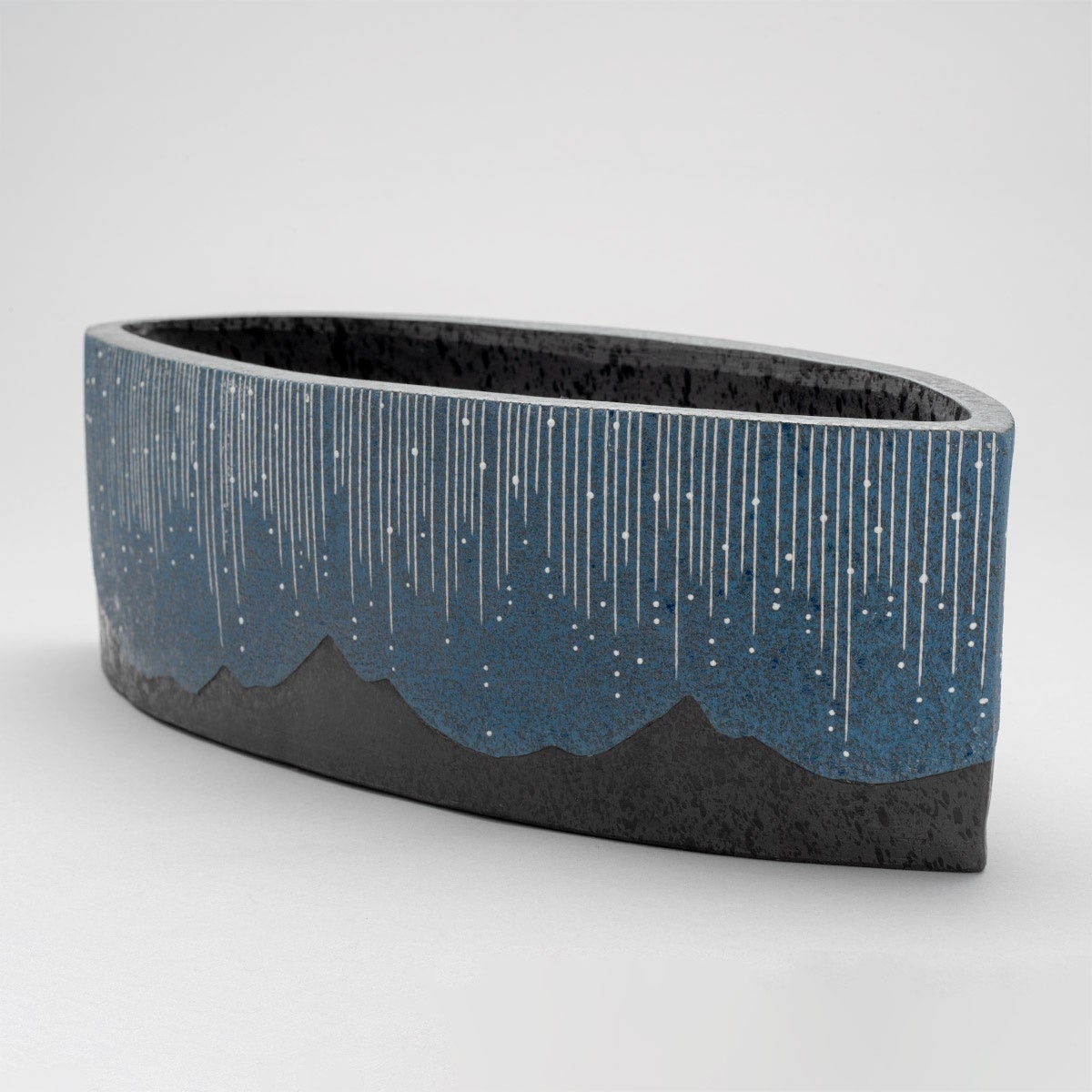 プロフィール: 染付けの技術を極めた陶芸家。制作活動に加えて陶芸工房「くにたち陶芸舎」代表として陶芸教室、特別支援学校での陶芸指導、障がい者高齢者施設での陶芸アクティビティに従事。伝統的な技法を用いながらも独自のデザインを追求し、日本工芸会をはじめとする展覧会での受賞歴を多数有する。作品はその精緻な仕上げと美しい色合いで国内外から高い評価を得ています。