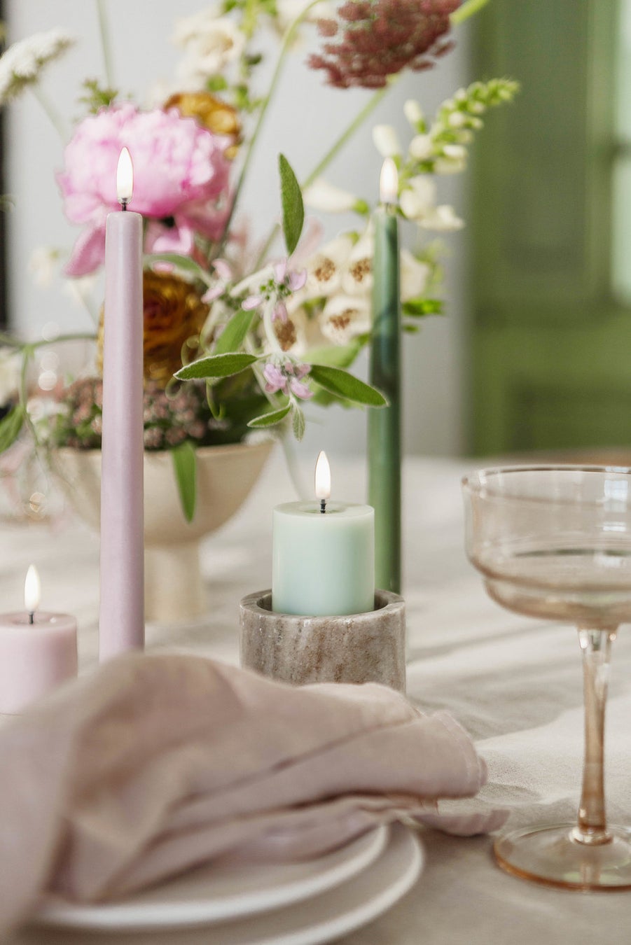 〈UYUNI Lighting〉のLEDキャンドルは、最新技術によってリアルな炎のゆらぎを再現しながらも、火を使わず安全に楽しめるLED仕様。環境にもやさしく、長く愛用できる北欧デザインとして北欧を中心に支持を集めています。日本では今秋より本格展開をスタートしました。