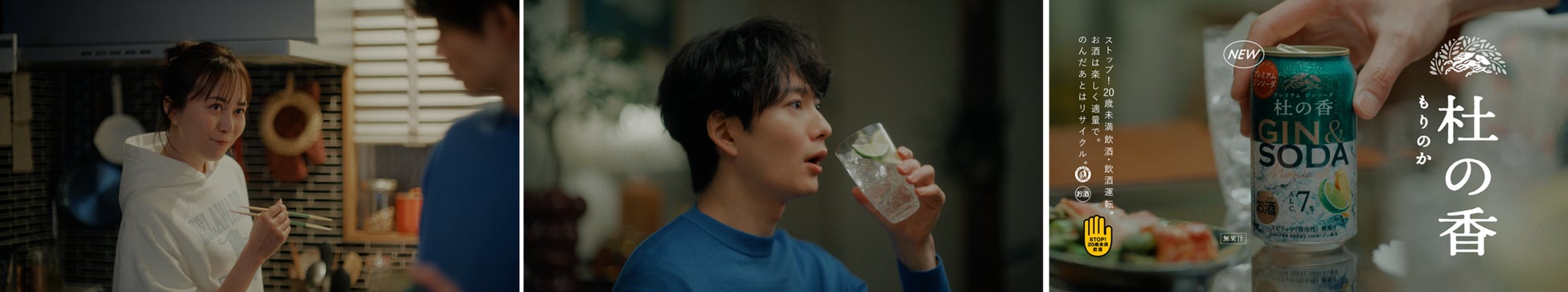 キリンビール株式会社(社長 堀口英樹)は、ジュニパーベリー100%※1のジンの清涼感はそのままに、よりすっきりとした味わいへとリニューアルしたプレミアムジンソーダのおいしさを伝える「KIRIN Premium ジンソーダ 杜の香(以下、杜の香)」の新TVCM「だって、おいしいジンを使ってるから。」篇を、俳優の岡田将生さんと比嘉愛未さんを起用し、4月8日(火)より全国で順次放映開始します。