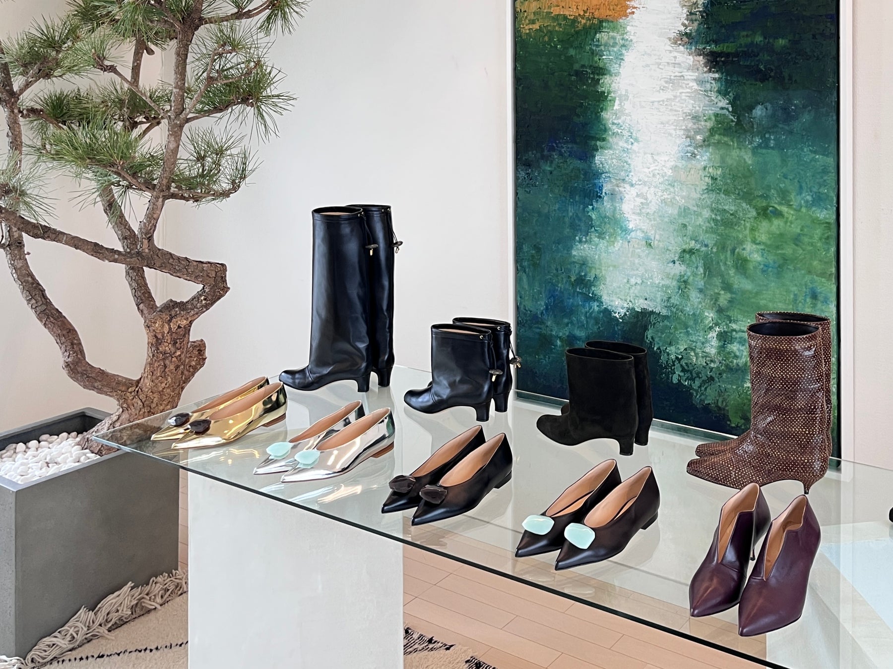 定番のシューズにストーンをつけた<ストーンシリーズ>の新作の他、ロングセラーの人気アイテムなど、幅広いラインナップを手に取ってご覧いただけて、ハーフサイズ単位でオーダーいただけます。
