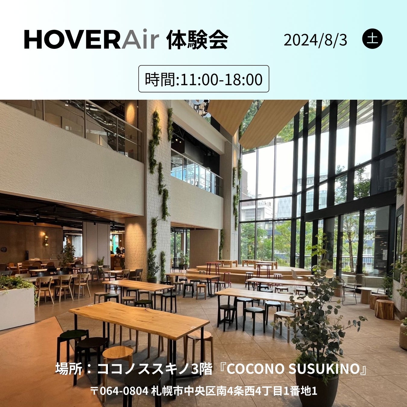ドローン及びAI飛行カメラ分野のリーディングカンパニーZERO ZERO ROBOTICSは、AI飛行カメラ「HOVERAir X1 Smart(ホバーエアー エックスワン スマート)」の体験会およびワークショップを2024年8月3日(土)に北海道札幌市にあるcocono susukinoにて開催します。