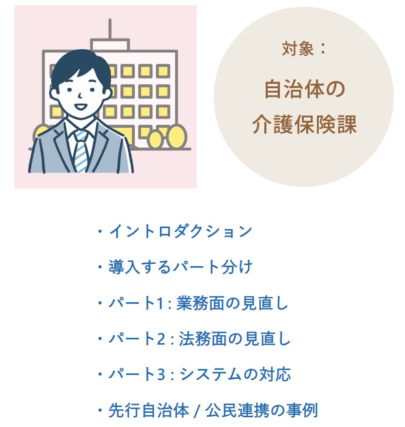 ・対象者:自治体の介護保険課、事業所の責任者や管理者