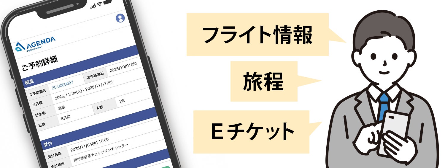 いつでもどこでも、旅行者が最新の旅程や書類を確認可能です。