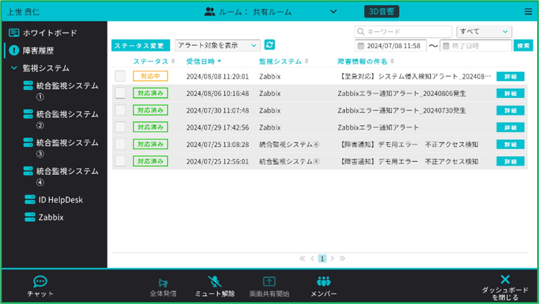 また、ダッシュボード機能から障害履歴を参照できるため、障害内容の一元管理を行うことができます。