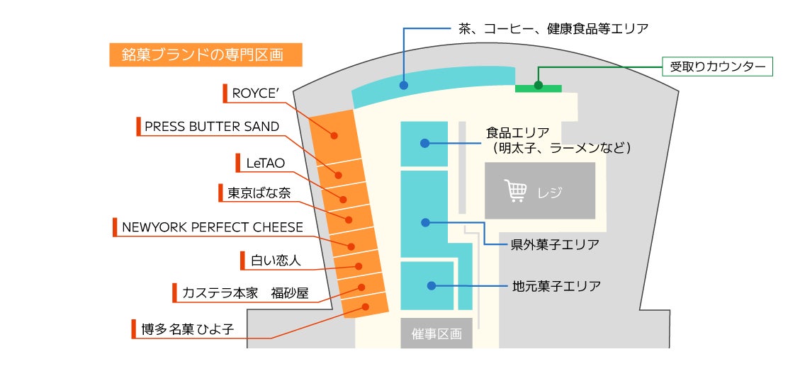 外国人に人気のある銘菓ブランドの専門区画を8区画整備し、ブティック形式で展開