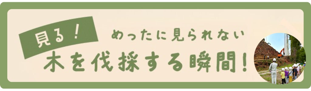 普段なかなか見ることのできない、重機を使った木の伐採シーンを間近で見学。生命力あふれる木が、家づくりの素材へと変わる瞬間を目の当たりにし、自然の力の壮大さと林業の迫力を体感できます。