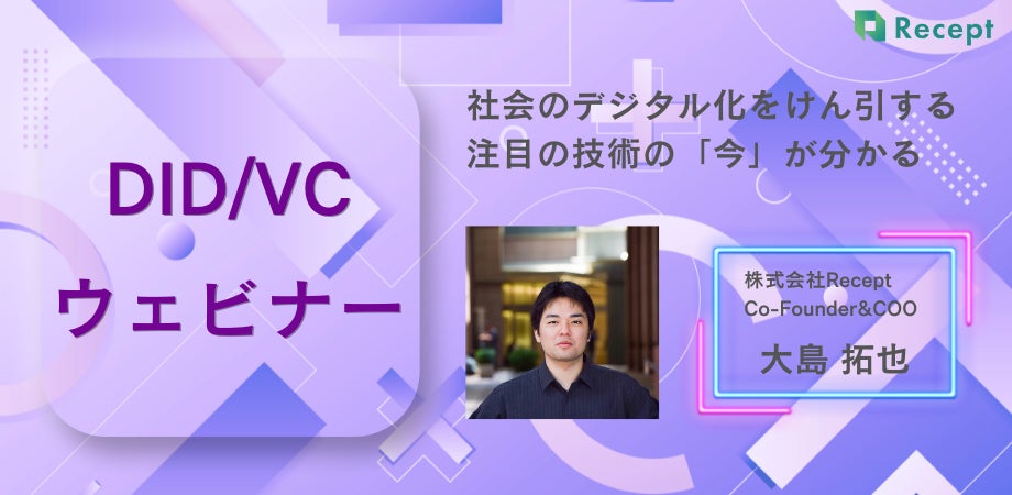 株式会社Recept(本社:東京都渋谷区、代表取締役社長:中瀬 将健)はDID/VC技術に関するウェビナー(無料)を開催いたします