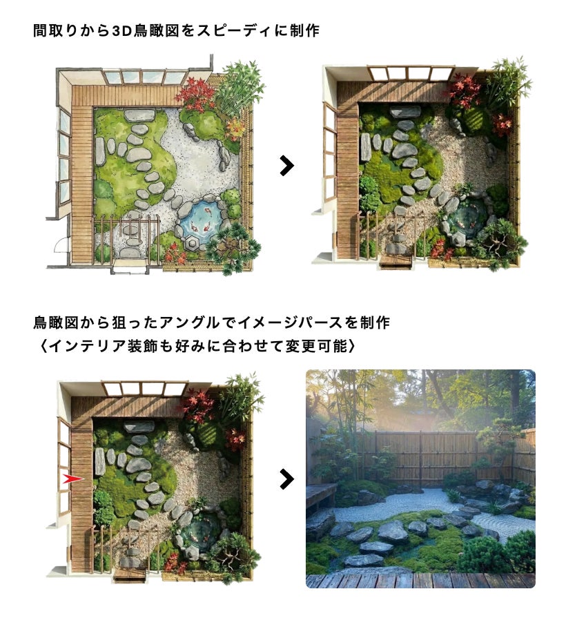 お庭・外構の初回提案を「当日」で実現する『お庭提案AI』登場。外構パースを高速化し、外注費は最大75%削減。