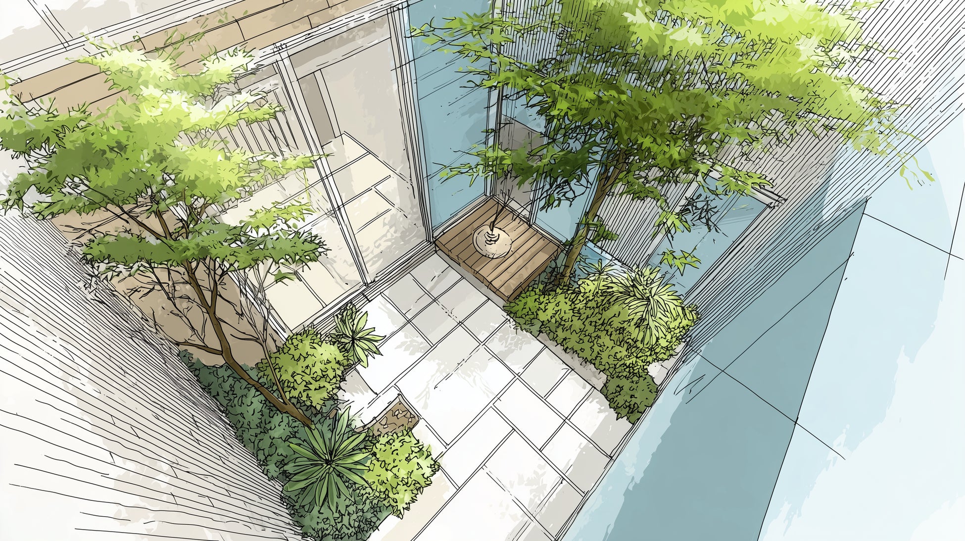 AI×クリエイターの受託制作により、高品質外構パース・植栽シミュレーション・3D鳥瞰図まで最短当日で提供。