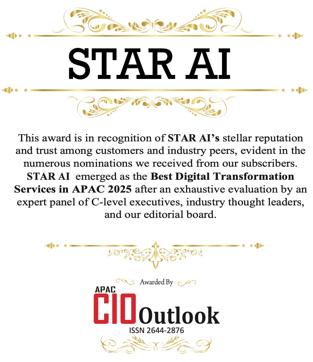 生成AI(言語、画像、動画)を含む数多くのAI開発・運用の実績と経験を用いて、クライアントのビジネス変革を支援する株式会社STAR AI(読み方:スターエーアイ、本社:大阪府大阪市、以下「STAR AI」)は、アジア太平洋地域のCXO向けITビジネス誌『APAC CIO Outlook』のBEST DIGITAL TRANSFORMATION SERVICES に選出されました。