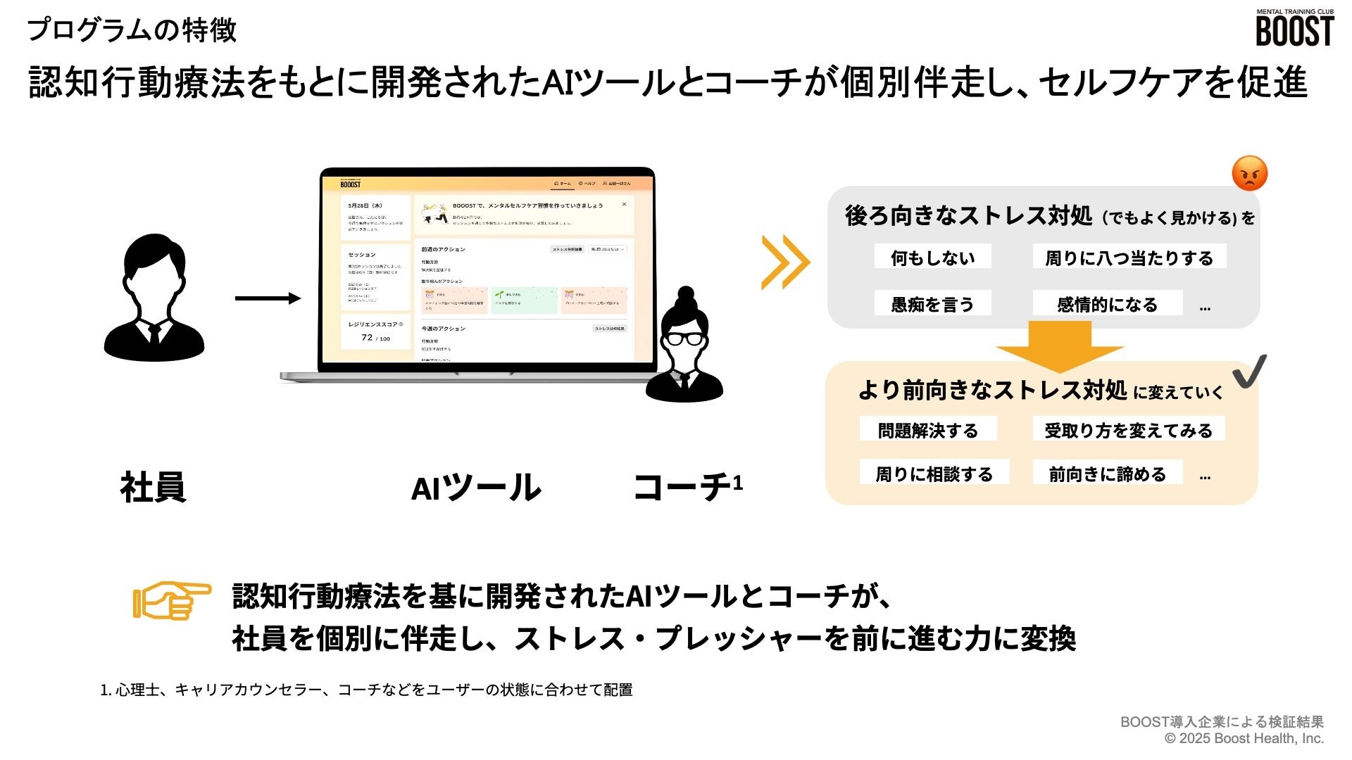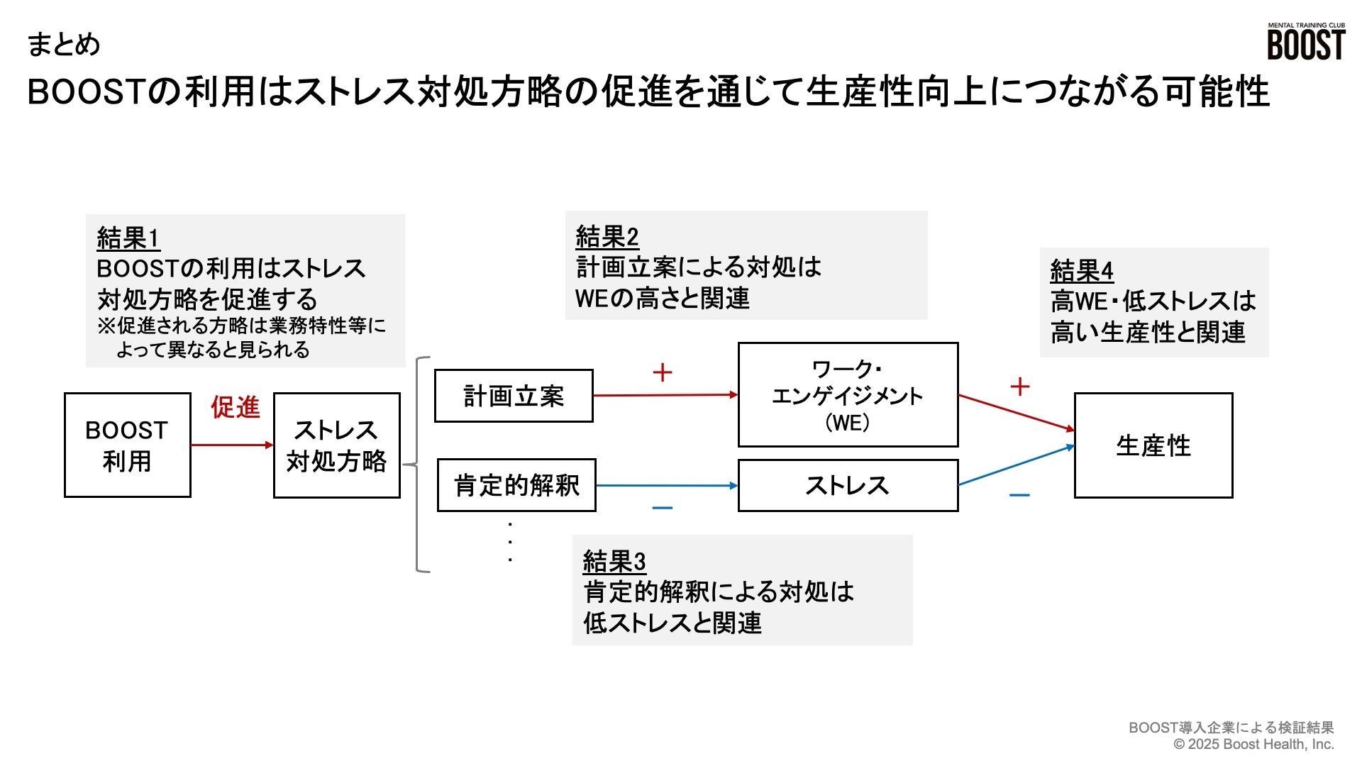 検証結果:BOOSTの利用がストレス対処力を促進し、生産性向上の可能性を確認