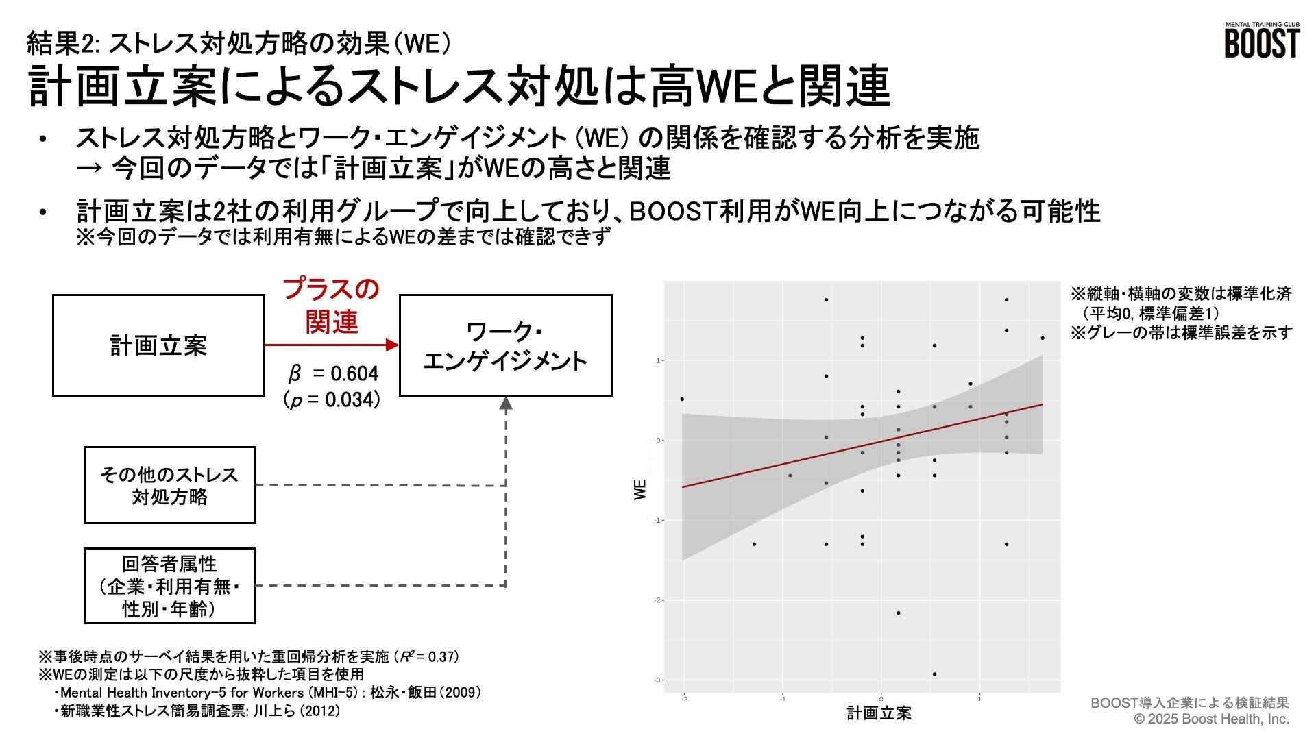 2. ストレス対処ができるとワーク・エンゲイジメント(WE)も高まる