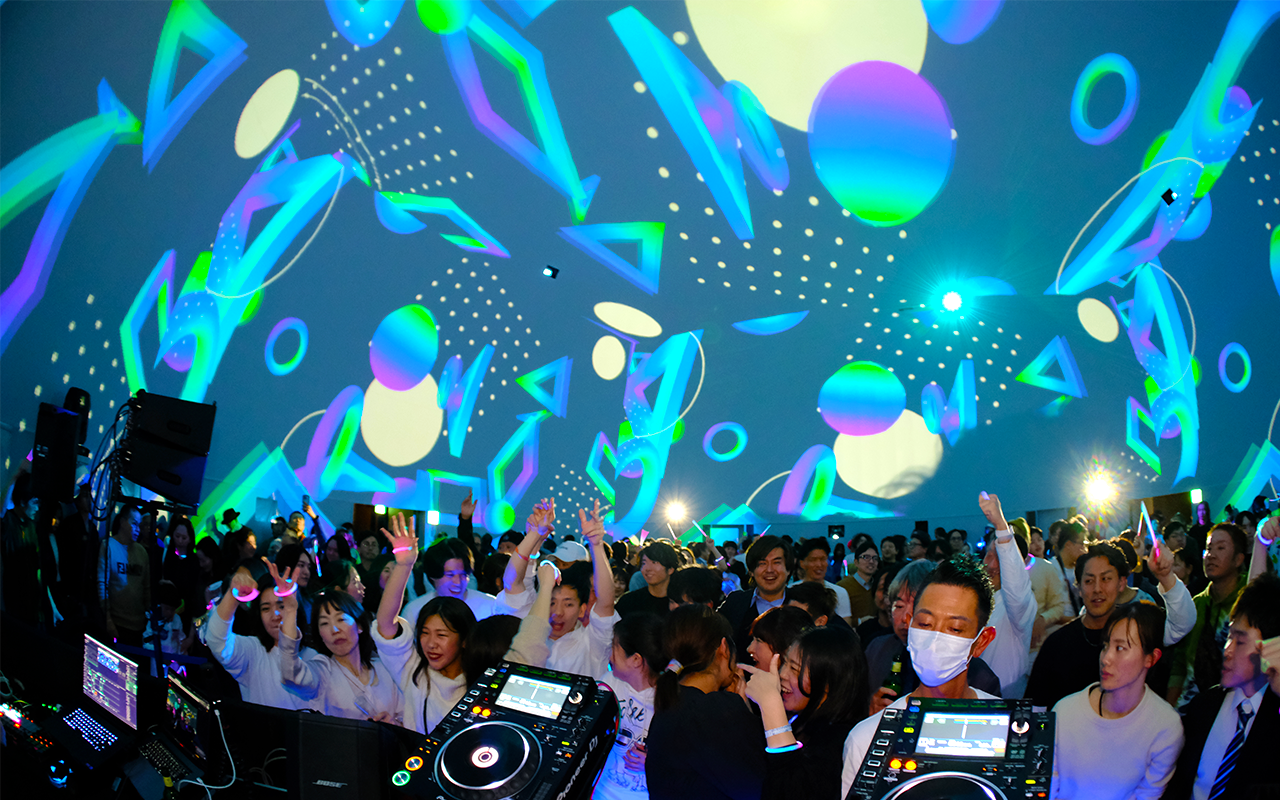 さらにドーム内に特設するDJ/VJブースで作り出される迫力のサウンドは、球状のドームで反響し臨場感を増大します。