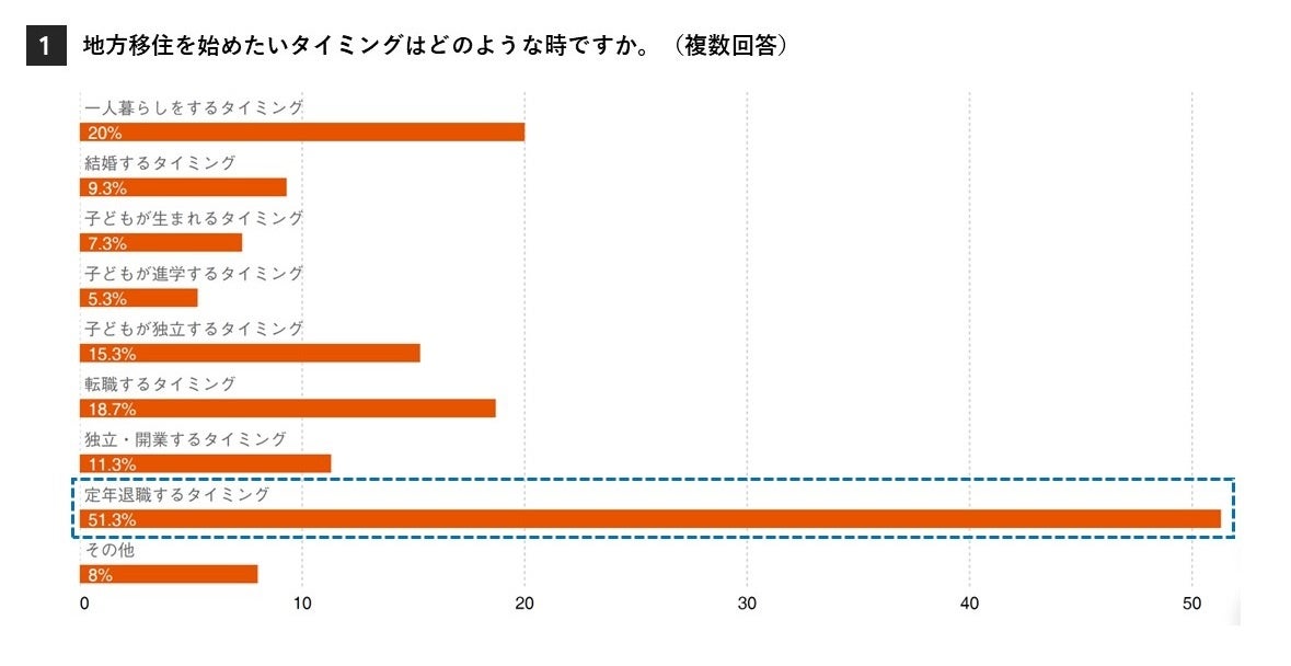 1、地方移住をはじめたいタイミングは、51.3%が定年退職するタイミング