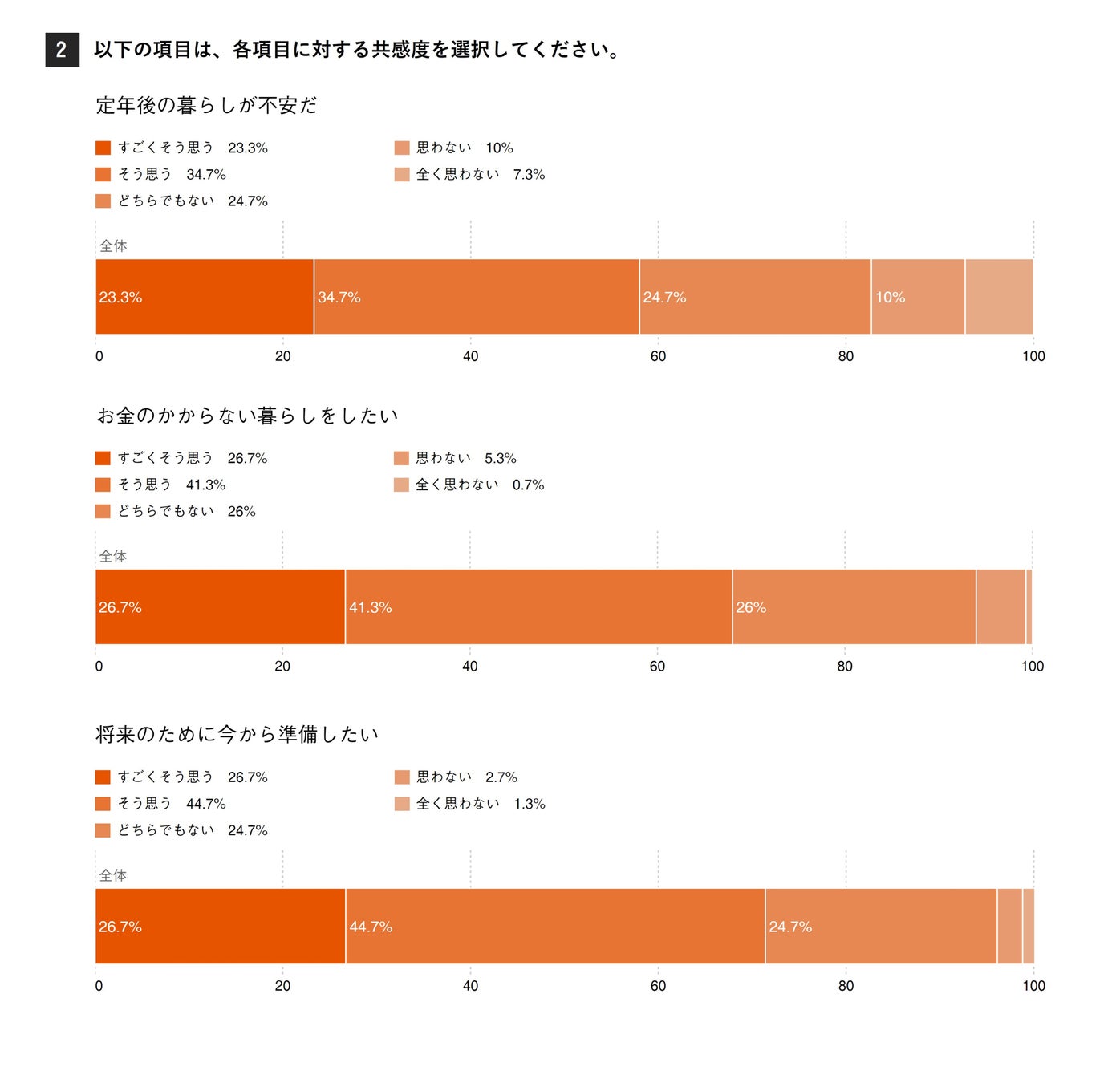 2、58%が定年後の暮らしが不安、68%がお金のかからない暮らしを望む