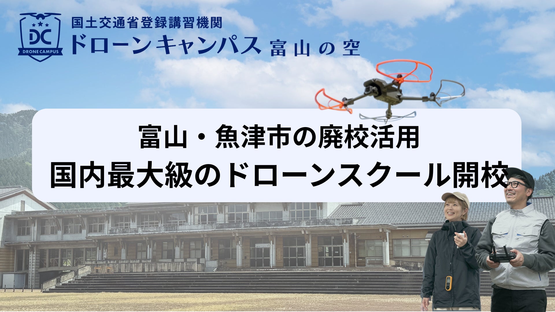 全国各地の廃校等を活用し、ドローン操縦の国家資格スクールにおける国内最大級グループを運営している北陸の空株式会社(所在地:福井県)は、2025年7月10日(木)より富山県にある廃校利活用施設「毛勝の郷シェルピース(旧片貝小学校. 所在地:富山県魚津市)」を拠点に「ドローンキャンパス【富山の空】」を開校します。本校は富山県内では初の開校で全国7拠点目となります。
