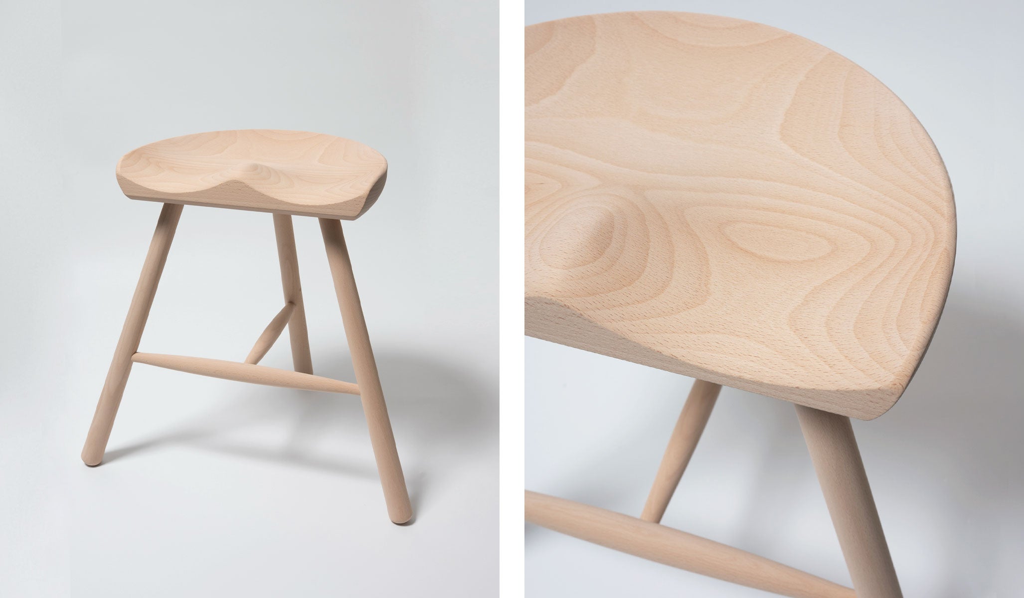 ・無垢材を削り出した座面が人の身体に自然にフィットする北欧デザインを代表する名作スツール