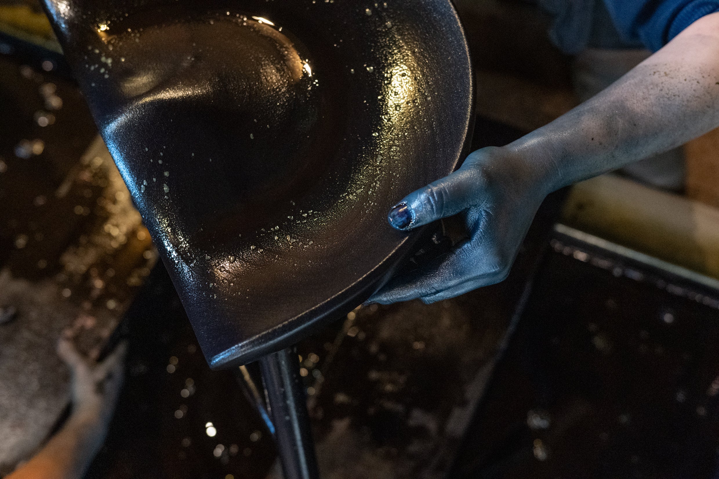 第一弾では素材表現の可能性として石目吹付塗装に取り組みましたが、第二弾となる本モデルでは、時間の経過そのものを内包する技法として、徳島・阿波に受け継がれてきた天然藍染めを採用しています。