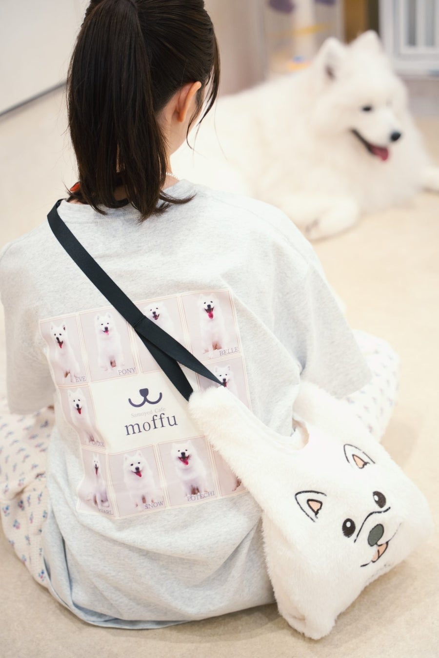 コラボレーションアイテムには、moffu原宿店で活躍するサモエドたちをモチーフにデザインを採用。