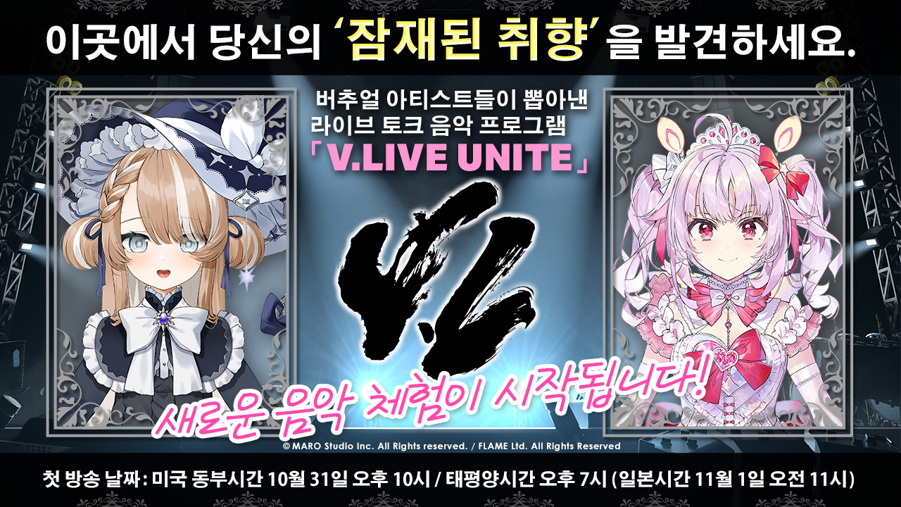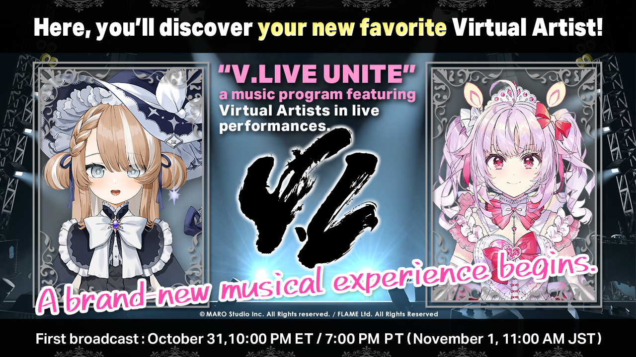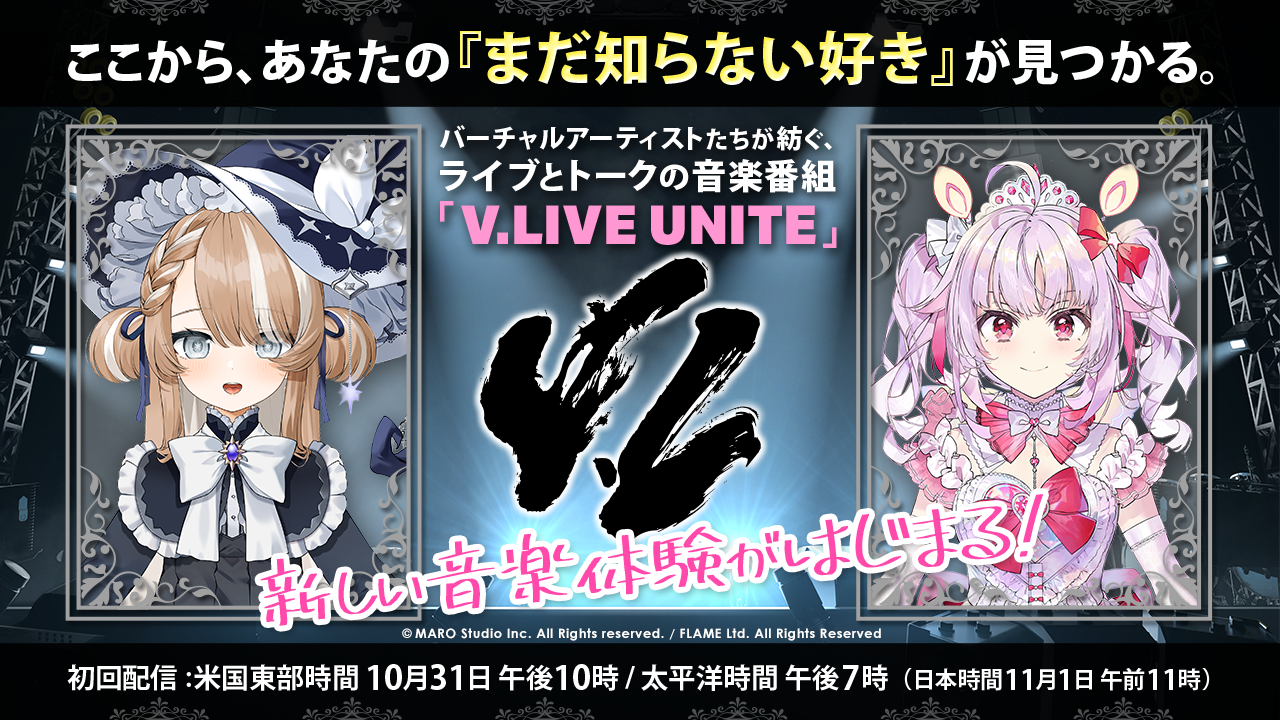 株式会社フレイム (東京都中央区 代表取締役社長:岡本昭彦)は、音楽番組「V.LIVE UNITE」の初回配信を2025年11月1日(土)11:00(JST)よりYouTube(公式チャンネル:https://www.youtube.com/@V.LIVEUNITE)にて公開いたします。