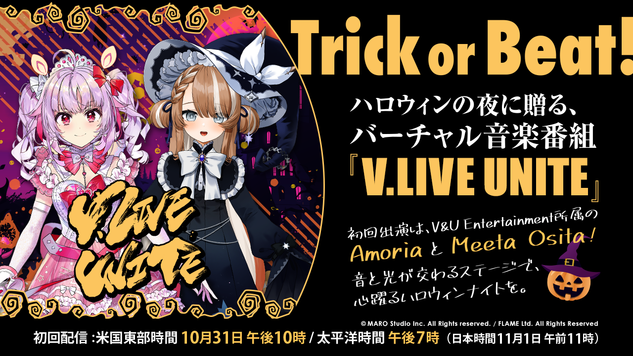 ハロウィンをテーマに、V&U Entertainment所属 Amoria&Meeta Ositaが登場!世界をつなぐ新感覚バーチャル音楽番組が始動。