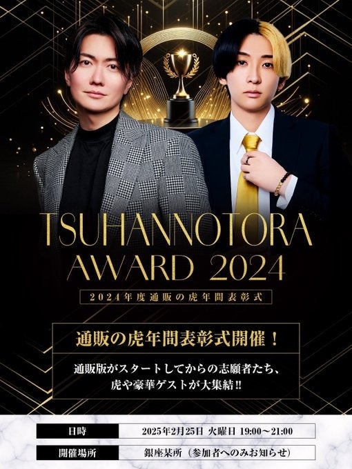 志願者、虎、ヒカル、リュウジなど豪華ゲストが参加する年間表彰式「通販の虎AWARD2024」を2月25日㈫19時に開催!当日は通販の虎公式YouTubeチャンネルにて無料生配信致します!