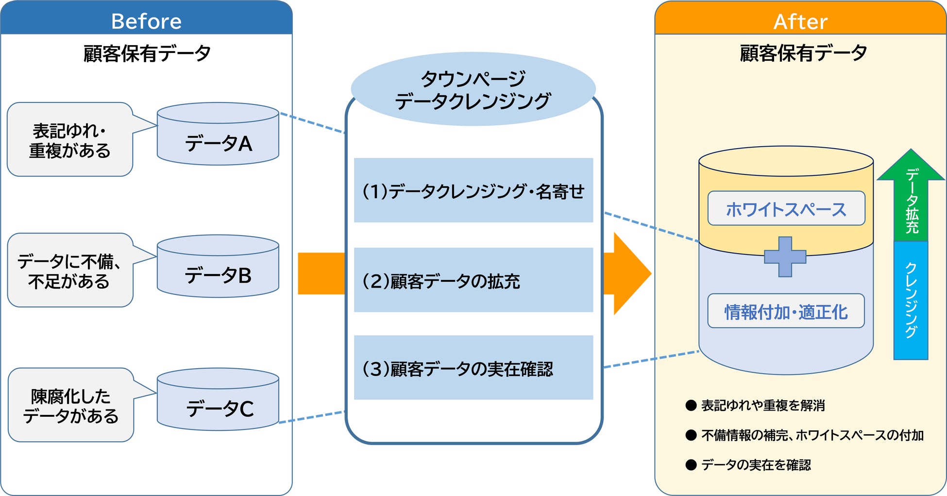 こうした顧客データにおける課題解決を目的に、両社のサービス連携による「タウンページデータクレンジング」を提供することとなりました。
