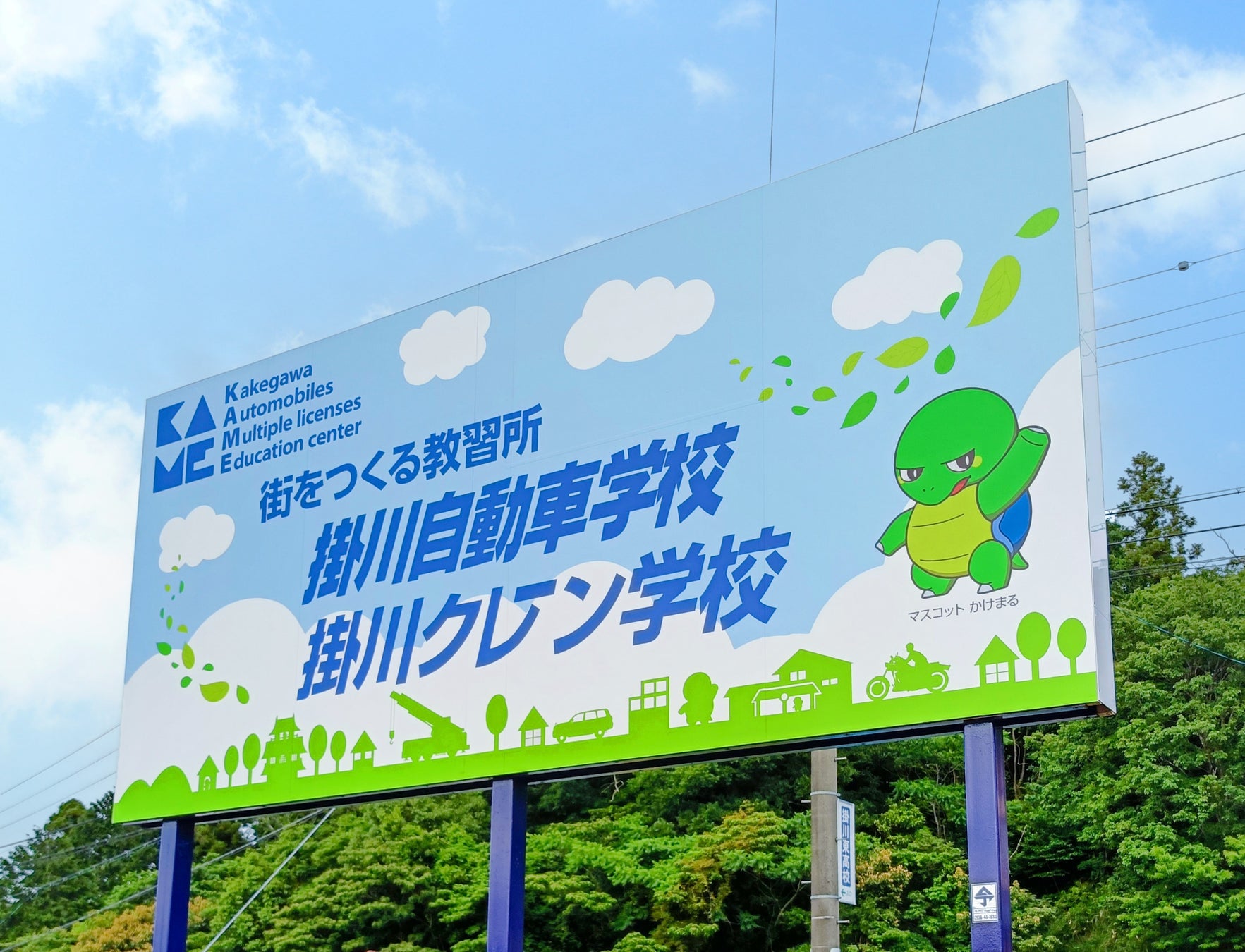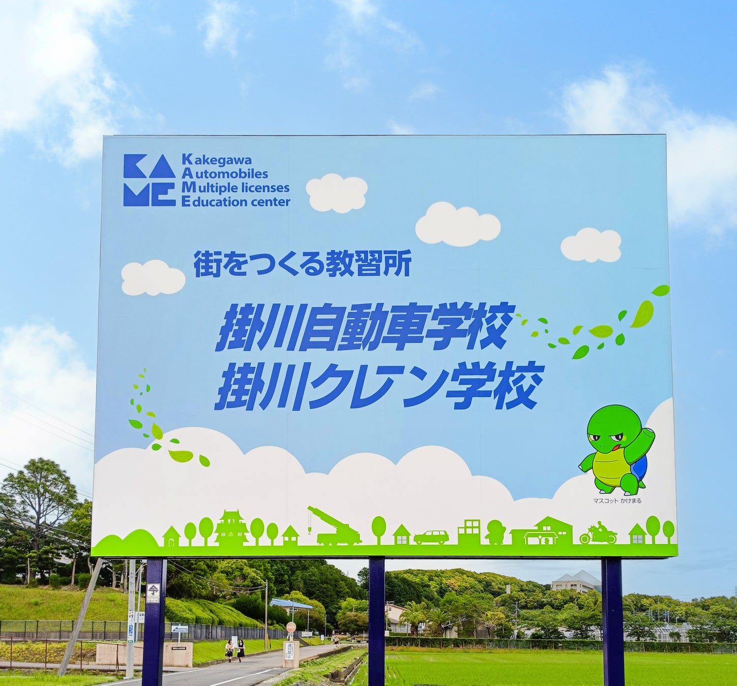 今回のリニューアルは、「街をつくる教習所」として、より親しみやすく、地域の皆さまに愛される学校づくりを目指す取り組みの一環です。新マスコット「かけまる」は、掛川自動車学校のイメージキャラクターとして、子どもから大人まで幅広い層に親しみやすさを感じていただけるデザインとなっております。