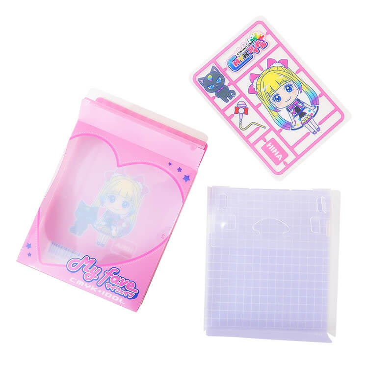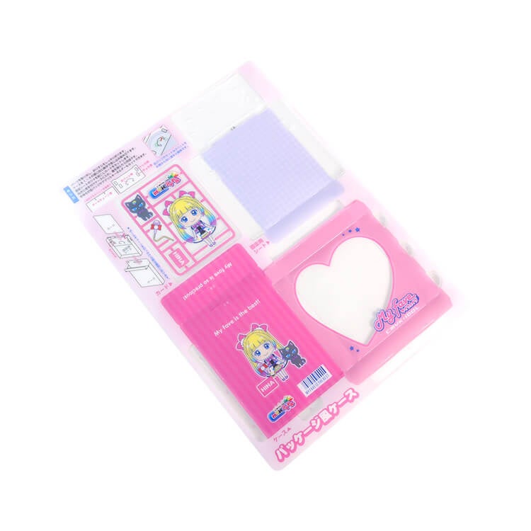 「パッケージ風ケース」は、付属のトレカはもちろん、お手持ちの缶バッジやアクリルキーホルダーなども入るサイズ。お気に入りのグッズをキズや汚れから守りつつ、可愛く飾れるのがポイントだ。