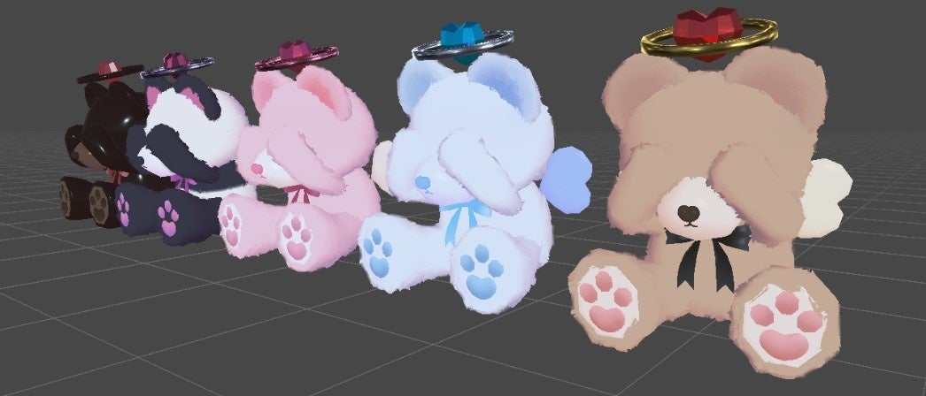 今回、夢展望は「VRChat」の特性や幅広いユーザー層を考慮し、「めかくしくま」を「DearMyLove」のキュートな世界観を取り入れたデジタルアクセサリーとして制作しました。購入者は、「VRChat」内で自身のアバターの頭上や背中などに装着することが可能です。