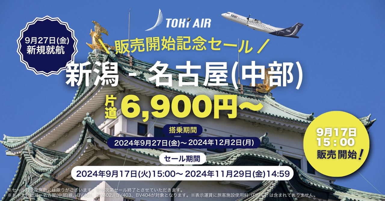 トキエア、「新潟=名古屋(中部)」線、就航日および航空券予約開始日が決定