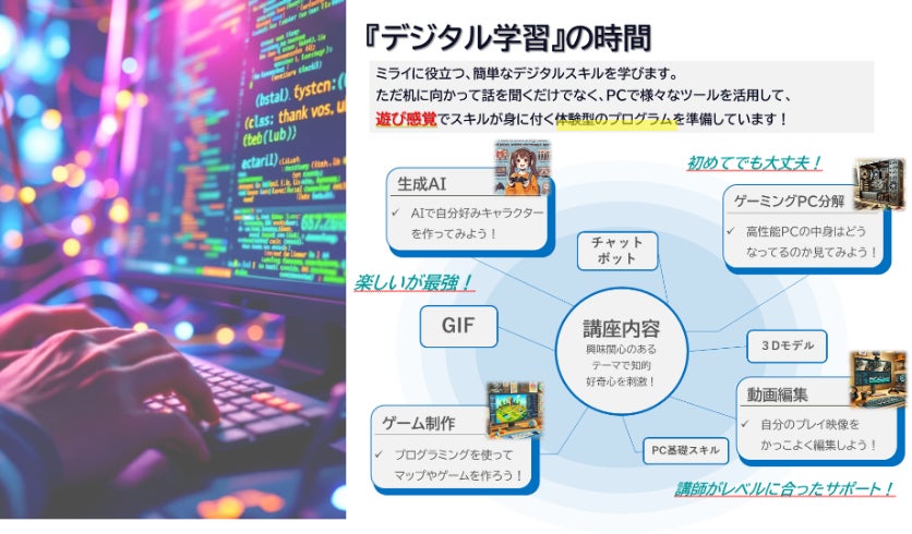 プログラミングや動画編集など、将来にもつながるデジタルスキルを学べる内容であり、生徒のeスポーツへの興味・関心から自然に学びへとつながるカリキュラムとなっています。