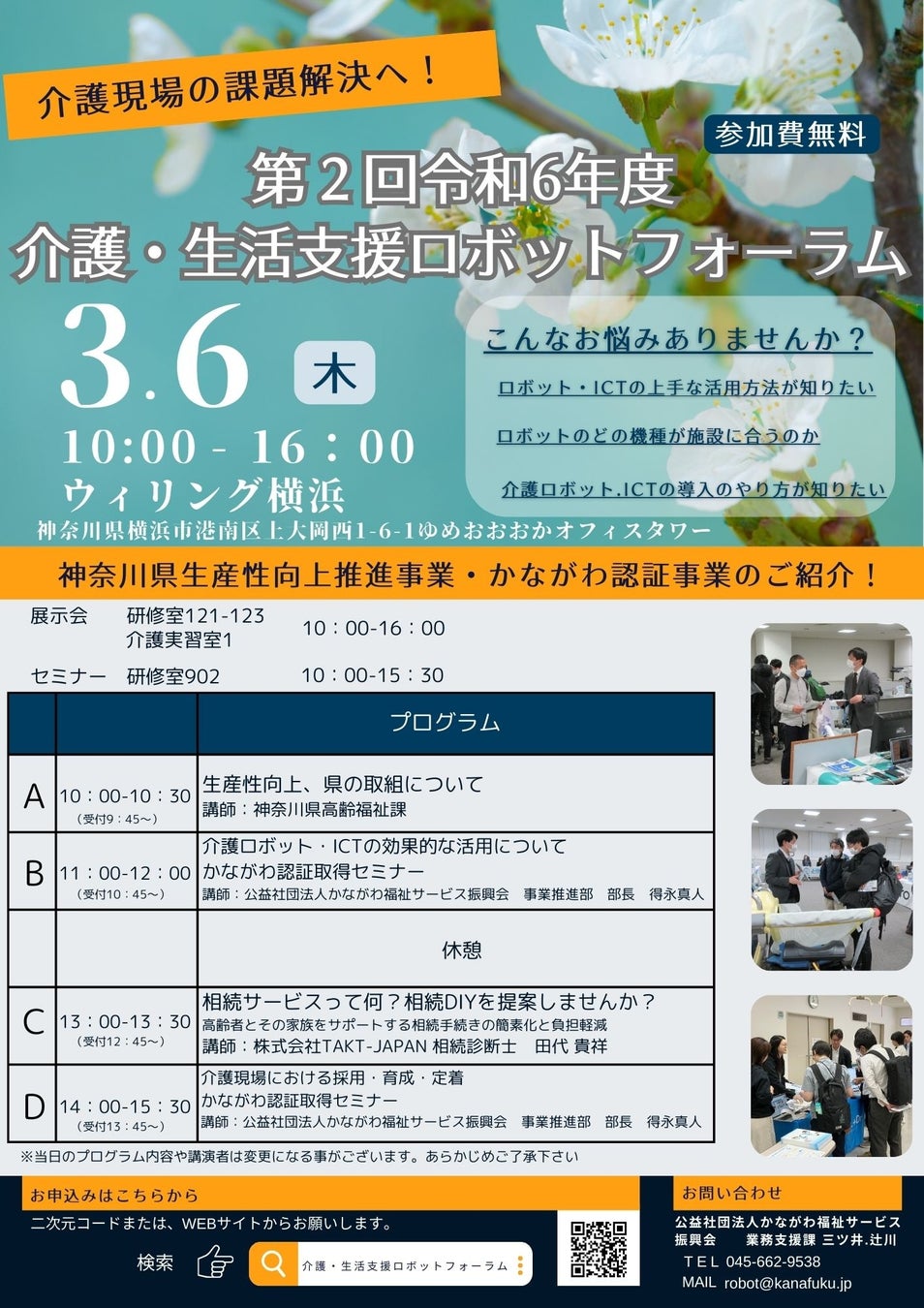 3月6日に横浜市で開催される展示会「令和6年度第2回介護・生活支援ロボットフォーラム」にてサービス詳細を説明いたします。詳細はセミナーにても発表をしますので是非お気軽に講座の御予約をお願いいたします。