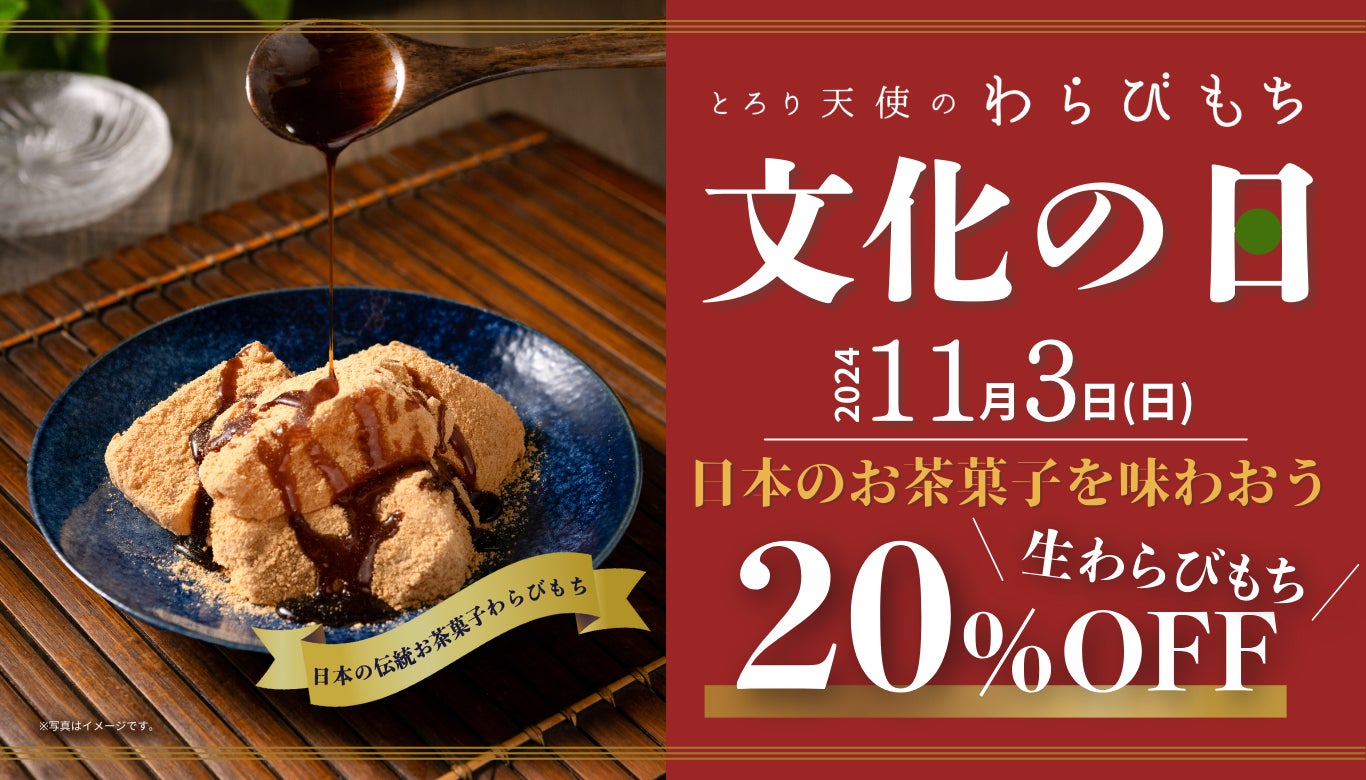 全国にとろり天使のわらびもちを展開する「とろり天使のわらびもち株式会社」は、11月3日(日)に、「文化の日」キャンペーンを実施致します。