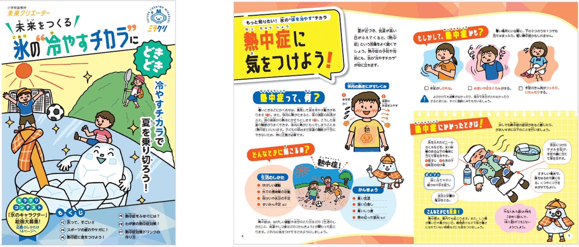 小久保製氷冷蔵株式会社(KOKUBOグループ、千葉県八千代市、代表取締役社長:小久保 龍平、以下小久保製氷)は、教育分野における地域・社会貢献を目的に、2024年7月に東京・大阪・北海道・千葉・静岡・兵庫・大分県の小学校4・5・6年生の児童を対象に小学校副教材「未来クリエーター氷の”冷やすチカラ”にどきどき」を100,000部配布しました。熱中症の正しい知識や対処法、またスポーツアイシングなど「ロックアイスⓇ」の活用術や身近にある氷の”冷やすチカラ”を知って頂き、生活に役立てて頂ける内容です。また「氷のキャラクター」コンテストを実施し、2024年10月以降に結果を発表します。
