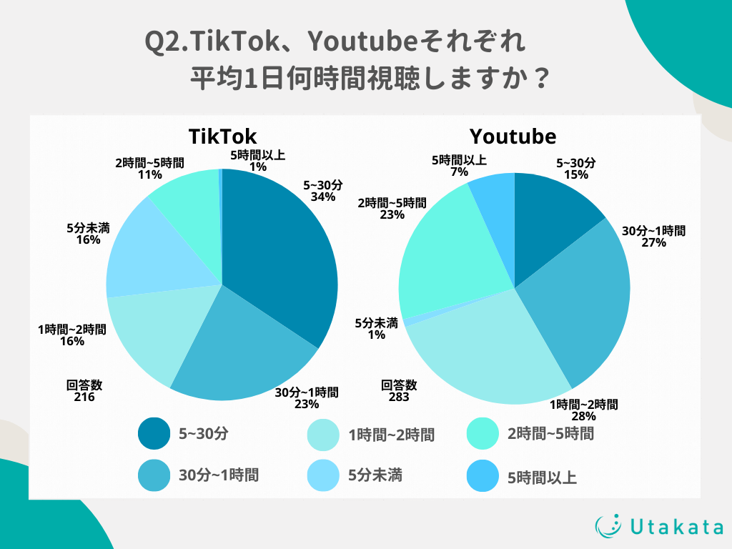 TikTokユーザーの35%は1日の視聴時間が「30分〜1時間」!YouTubeでは28%