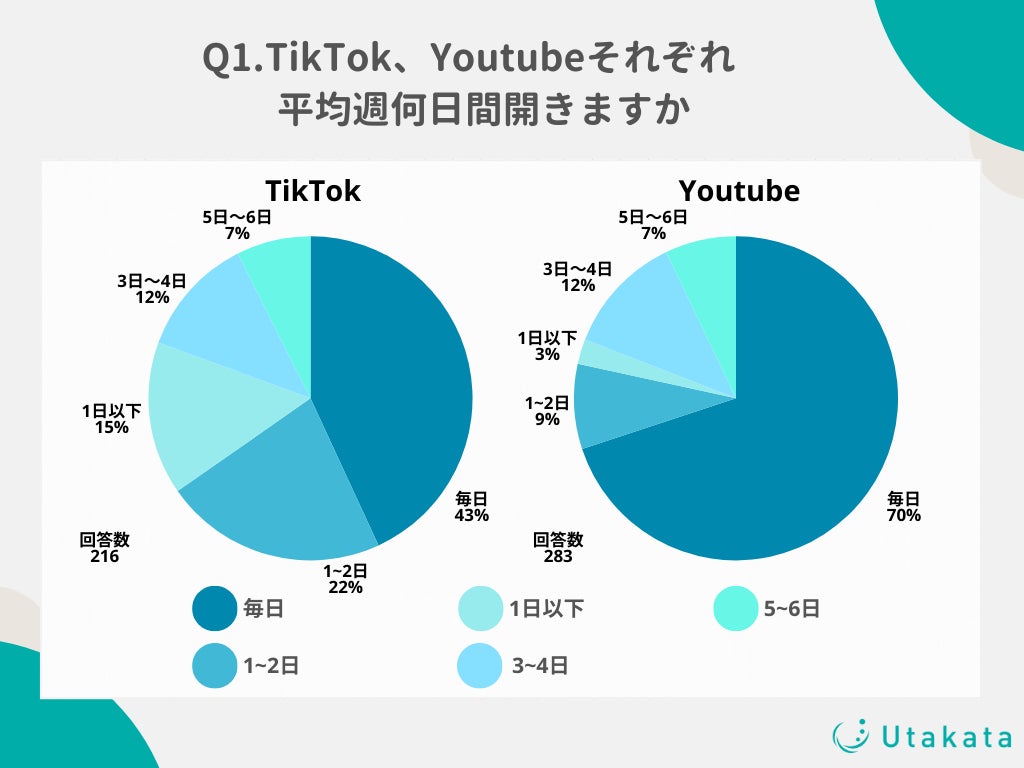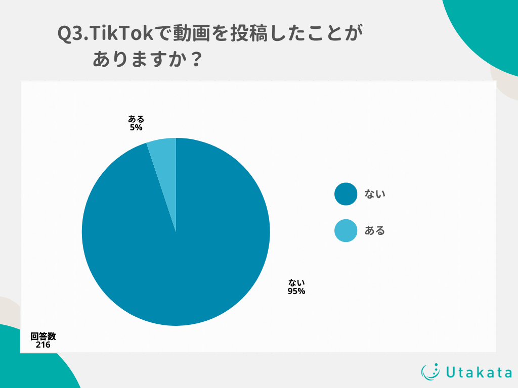 ショート動画SNSの運用やインフルエンサーキャスティングを行っている株式会社Utakata(https://utakata.co.jp/)は、10代〜50代のTikTokユーザーの男女216名を対象に、「TikTokの利用状況」に関する調査を実施いたしましたのでお知らせいたします。