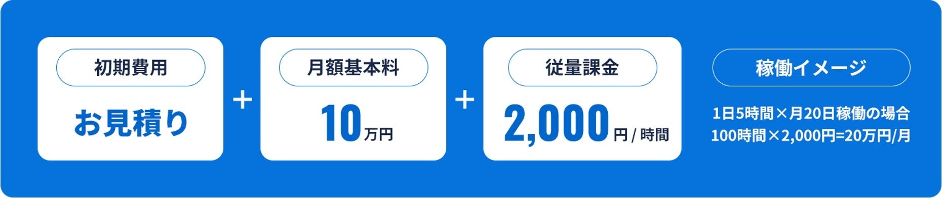 提供金額:初期費用+月額基本料+従量課金(2,000円/時間)