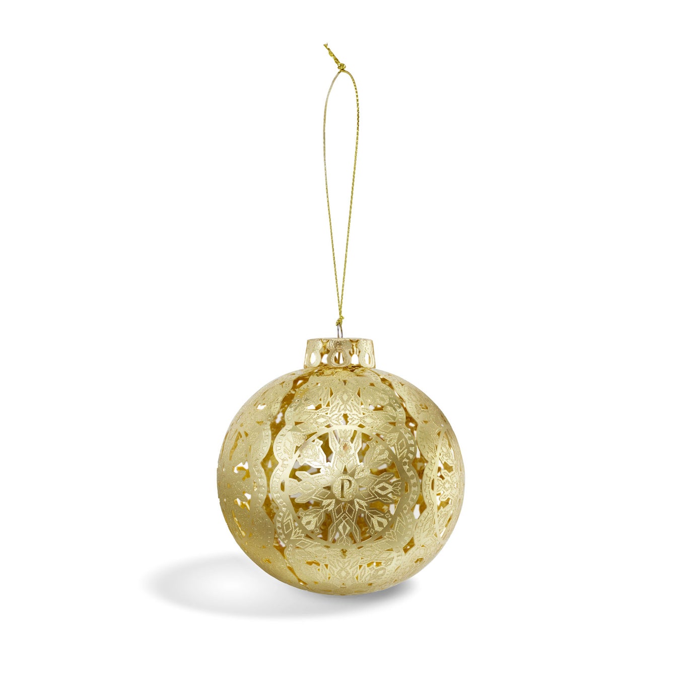 雪の結晶モチーフが施されたこのゴールドのオーナメントは冬の魔法のように輝き、フェスティブシーズンに華やかで心躍る喜びをもたらします。ツリーやお部屋を彩るきらめく宝物は、クリスマスの思い出や贈り物に最適です。