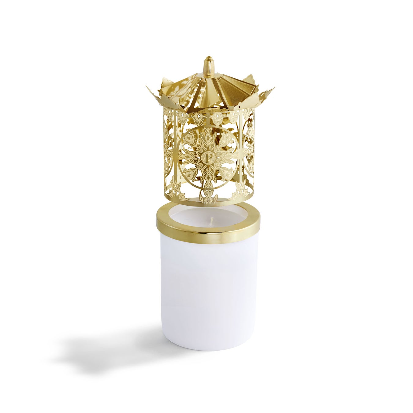 煌めくクリスマスの魔法とともに、優雅に回転するカルーセルキャンドルホルダー。その光と動きが織りなす幻想的な世界は、見る人を魅了します。