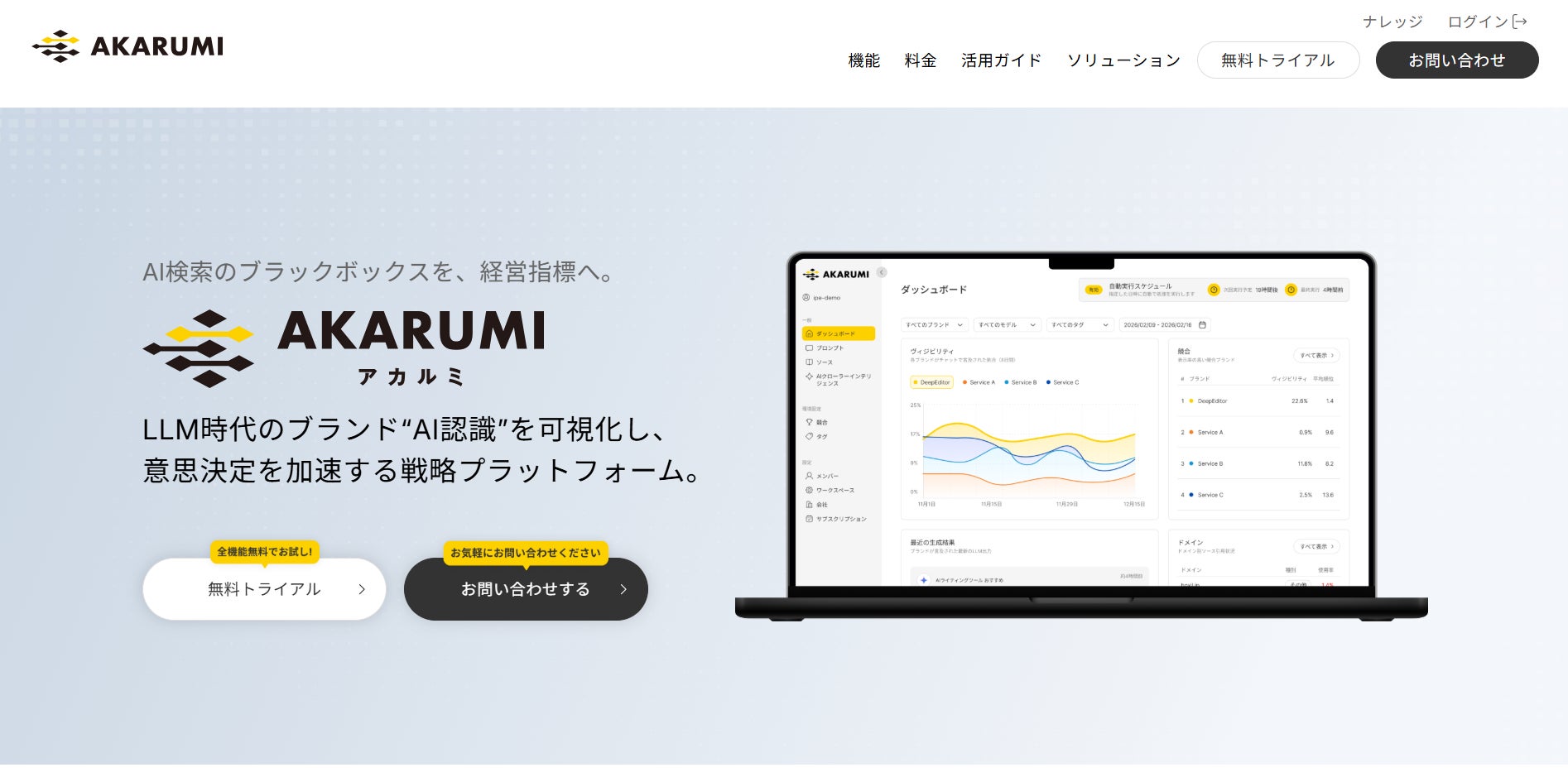 株式会社ipeは、生成AI/AI検索におけるブランド引用状況を可視化・分析するツール「AKARUMI(アカルミ)」の公式サイトをリニューアルいたしました。