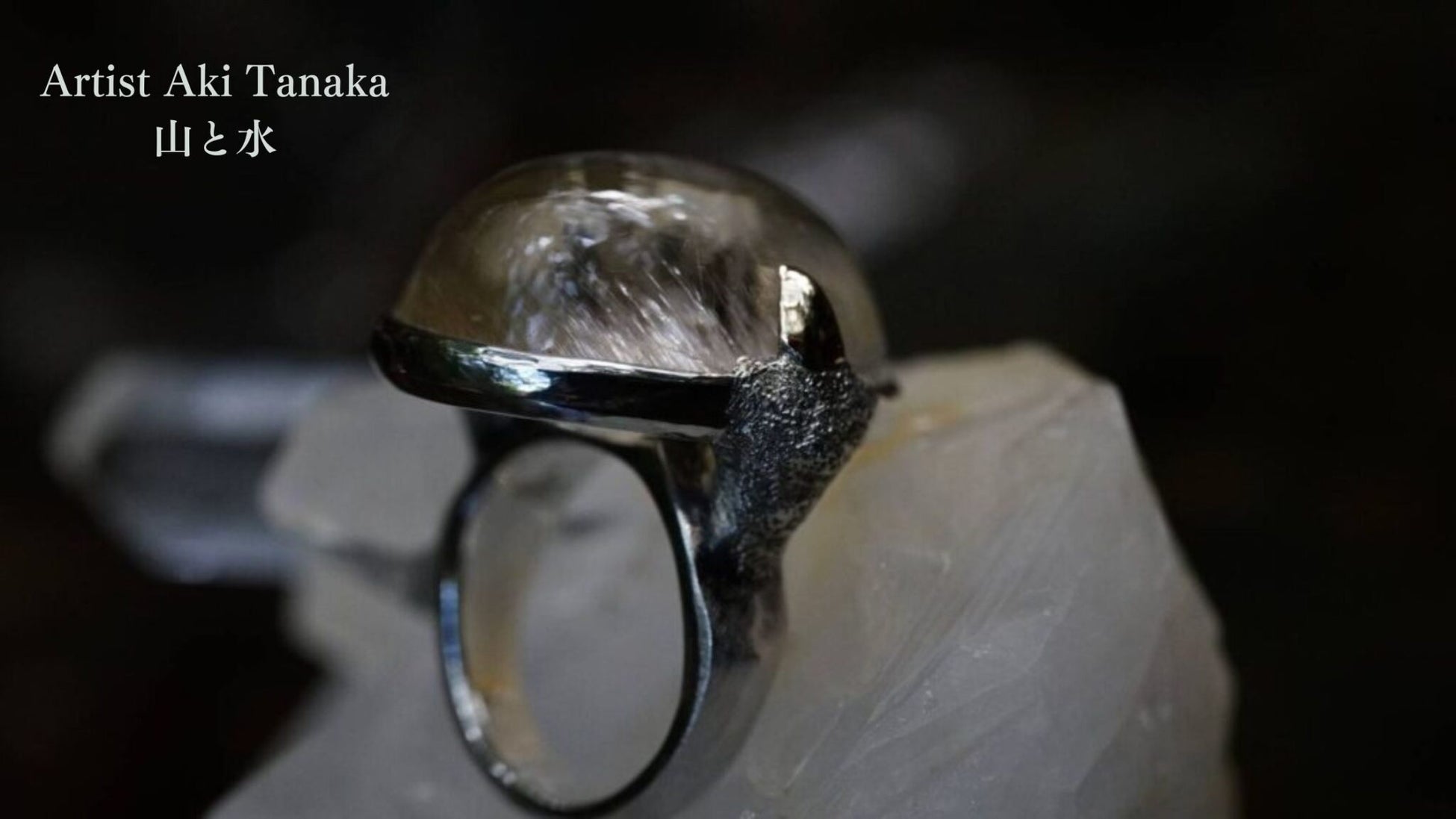 さらに黒に接する箇所には細かな粗しを加え、シルバー特有の経年変化により石と指環の世界観が融合するデザイン。