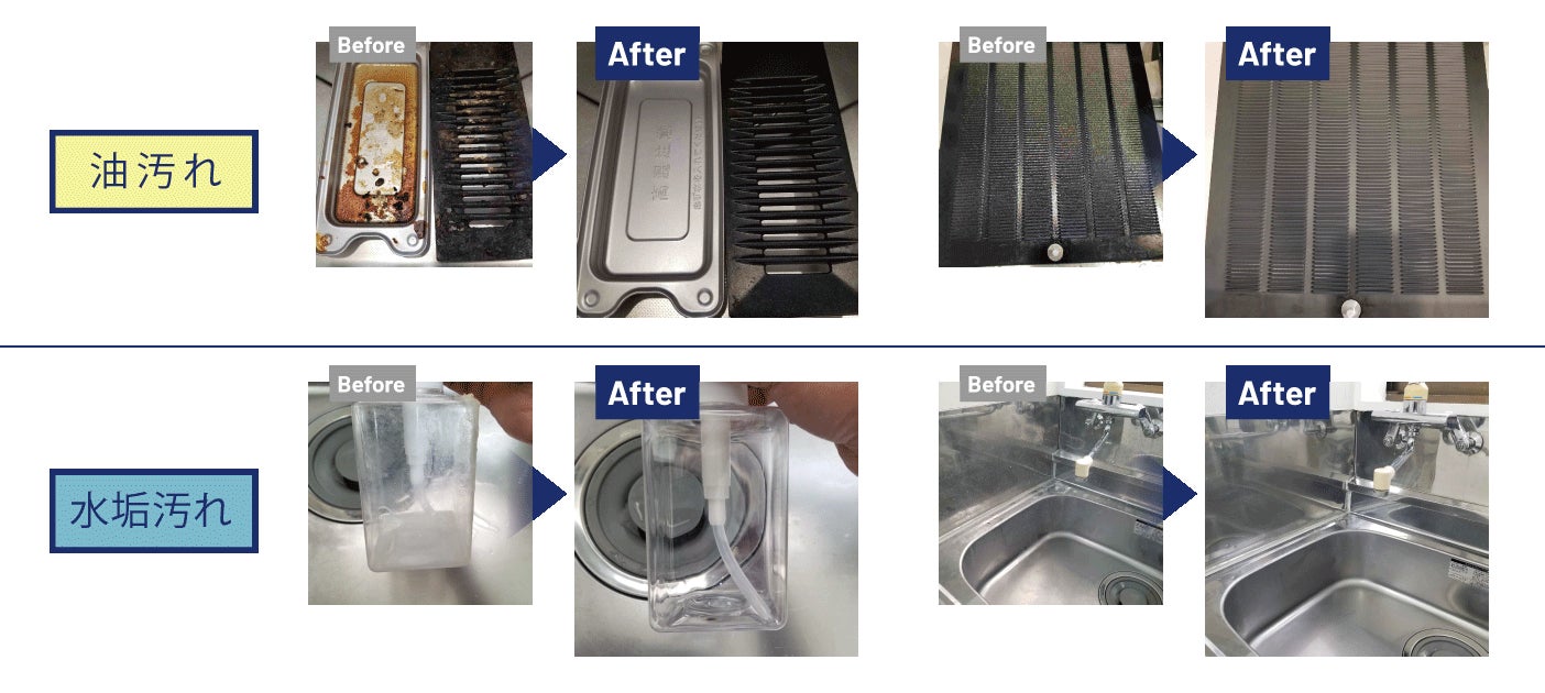 < 独自処方の洗浄成分が汚れを浮かせるので簡単・時短で清掃 >