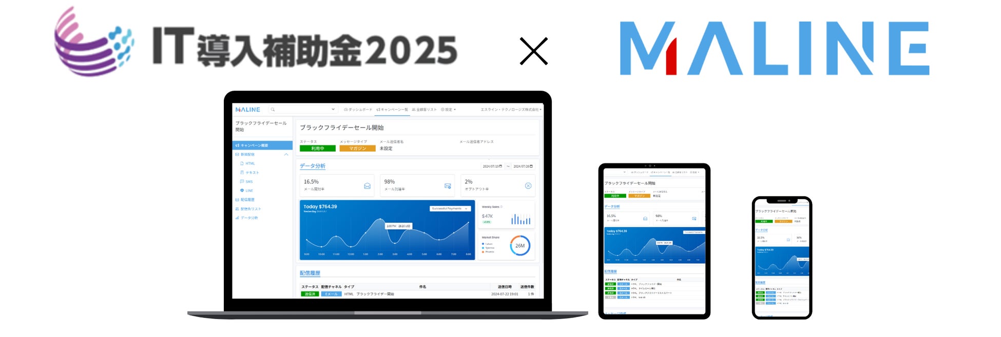 エスライン・テクノロージズ株式会社(本社:東京都港区、代表取締役:佐久間裕介、以下 「当社」)は、株式会社コードベース(本社:東京都品川区、代表取締役:田力誠也、以下 コードベース社)と共同開発した総合デジタルマーケティングツール「MALINE(マリン)」が経済産業省所管の「サービス等生産性向上 IT導入支援事業(以下、IT導入補助金)」において、補助対象 IT ツールとして正式に採択されたことをお知らせいたします。